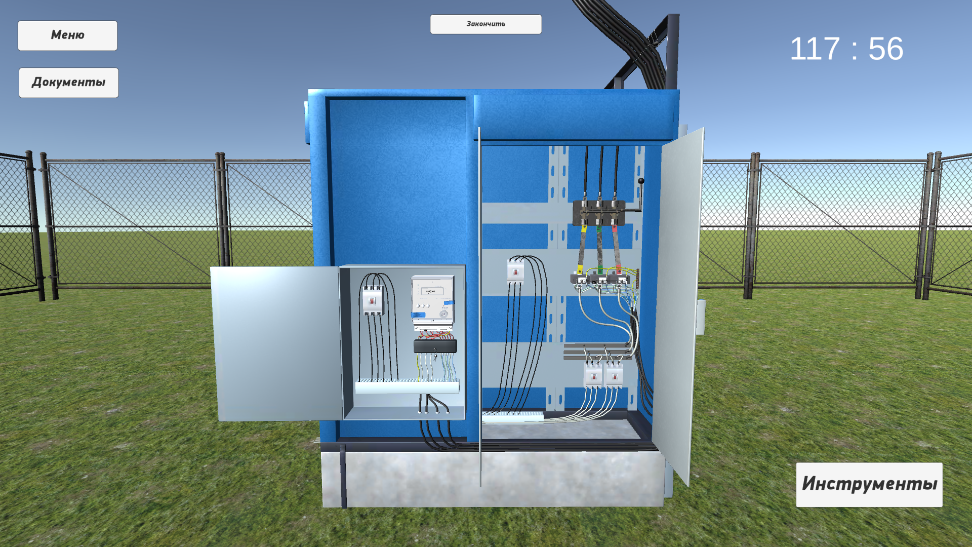В режиме экзамена пользователь без подсказок воспроизводит правильную последовательность действий по монтажу и проверке трехфазного счетчика. По завершении экзамена выводится автоматический отчет с указанием затраченного времени и количества правильных и неправильных действий.