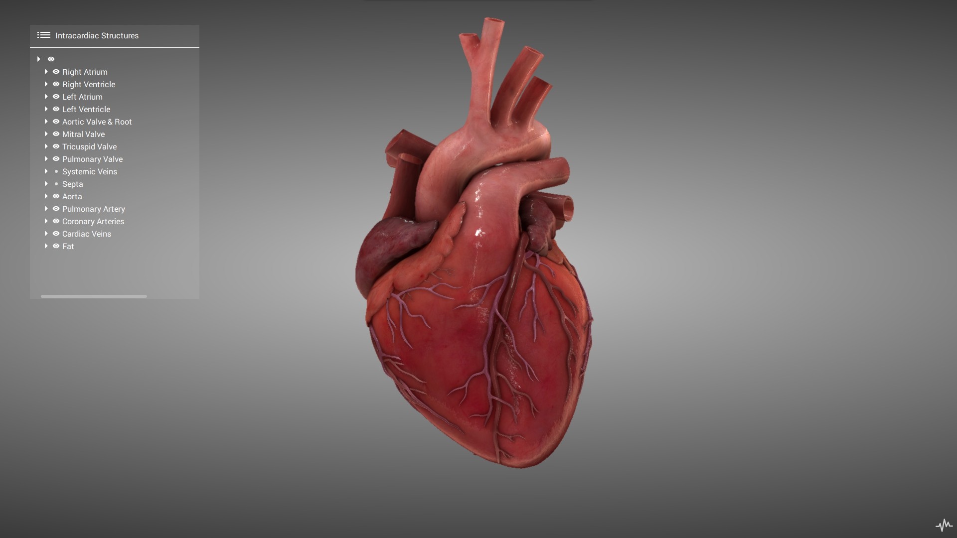 - Встроенный интерактивный учебник с интегрированной высокодетализированной 3D-моделью бьющегося сердца