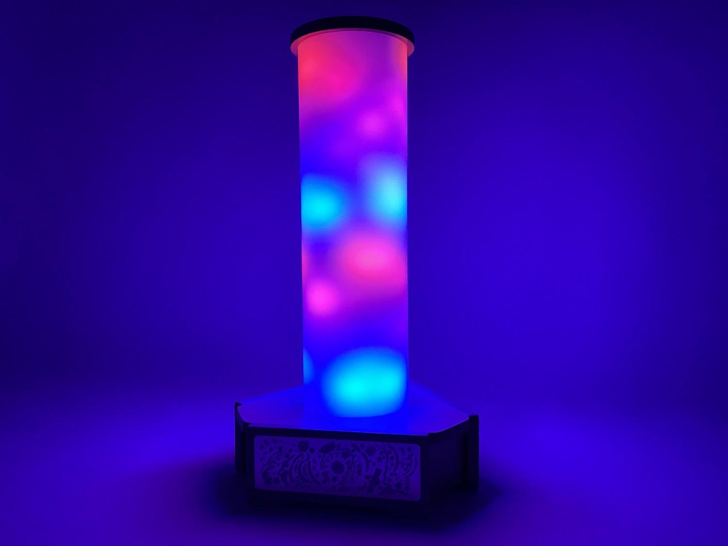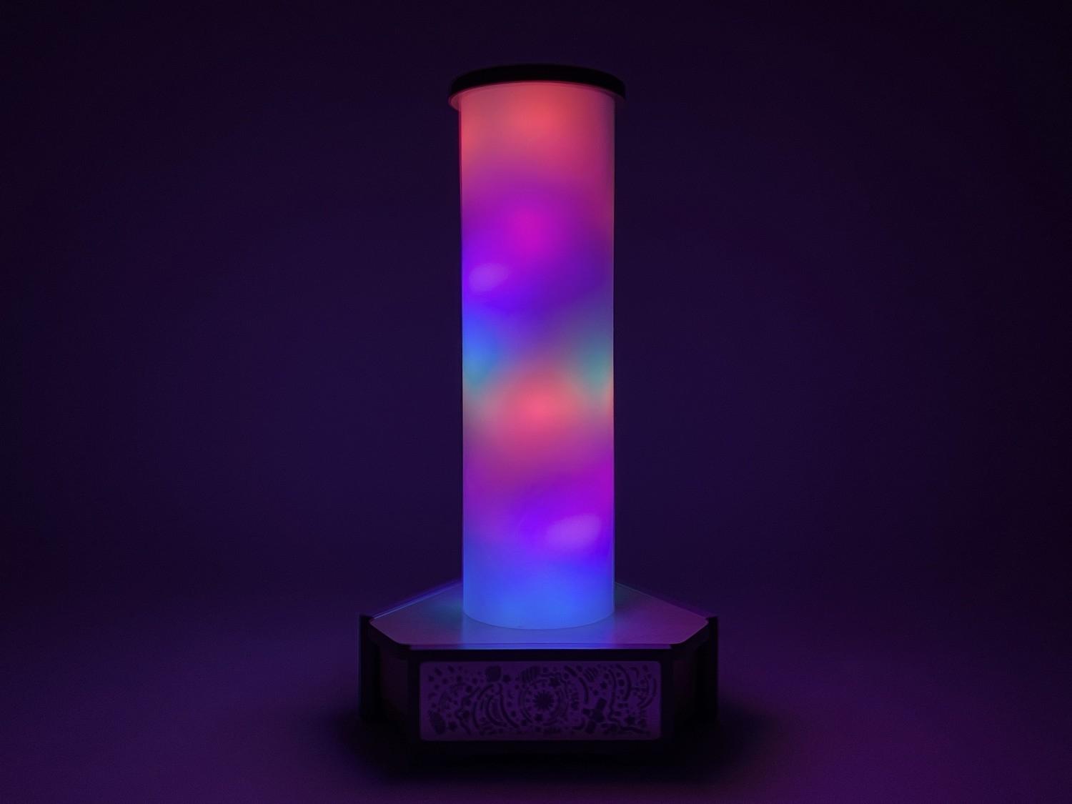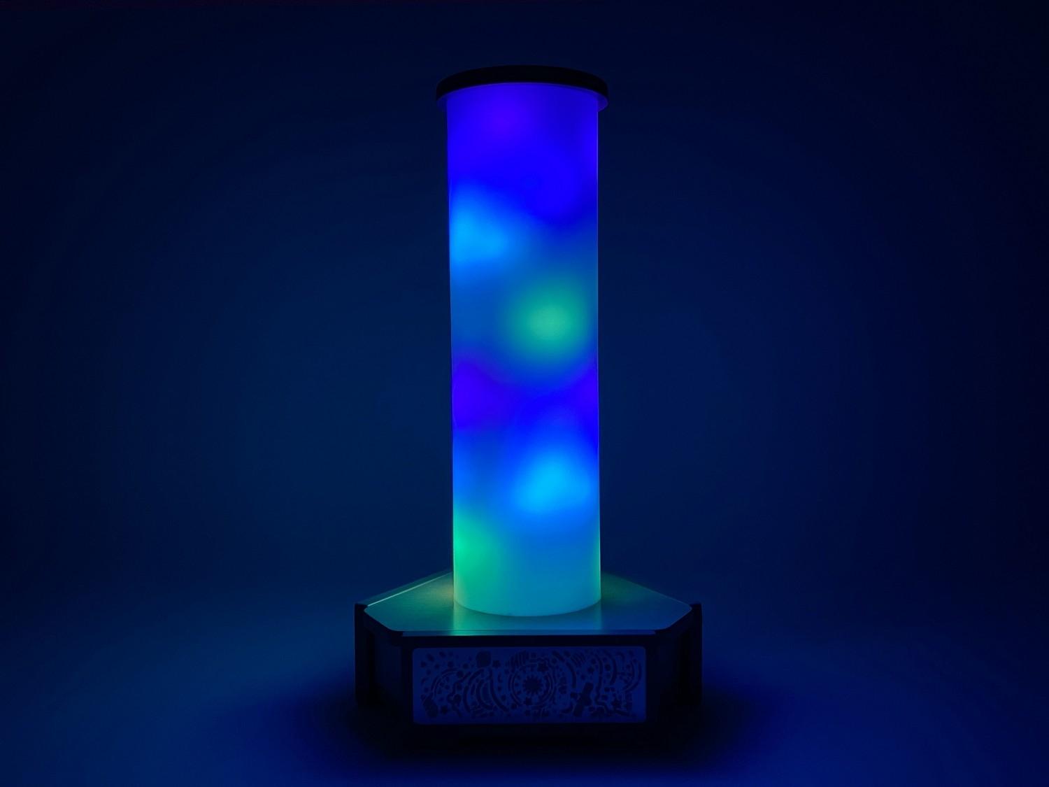 Свечение колонны регулируется с пульта управления, в нём есть 142 динамических режима: можно переключать цвета, скорость и плавность их смены, добавлять различные спецэффекты. Предусмотрена функция сбора любимых эффектов: те, что вам больше нравятся, будут выделены в отдельный плейлист.